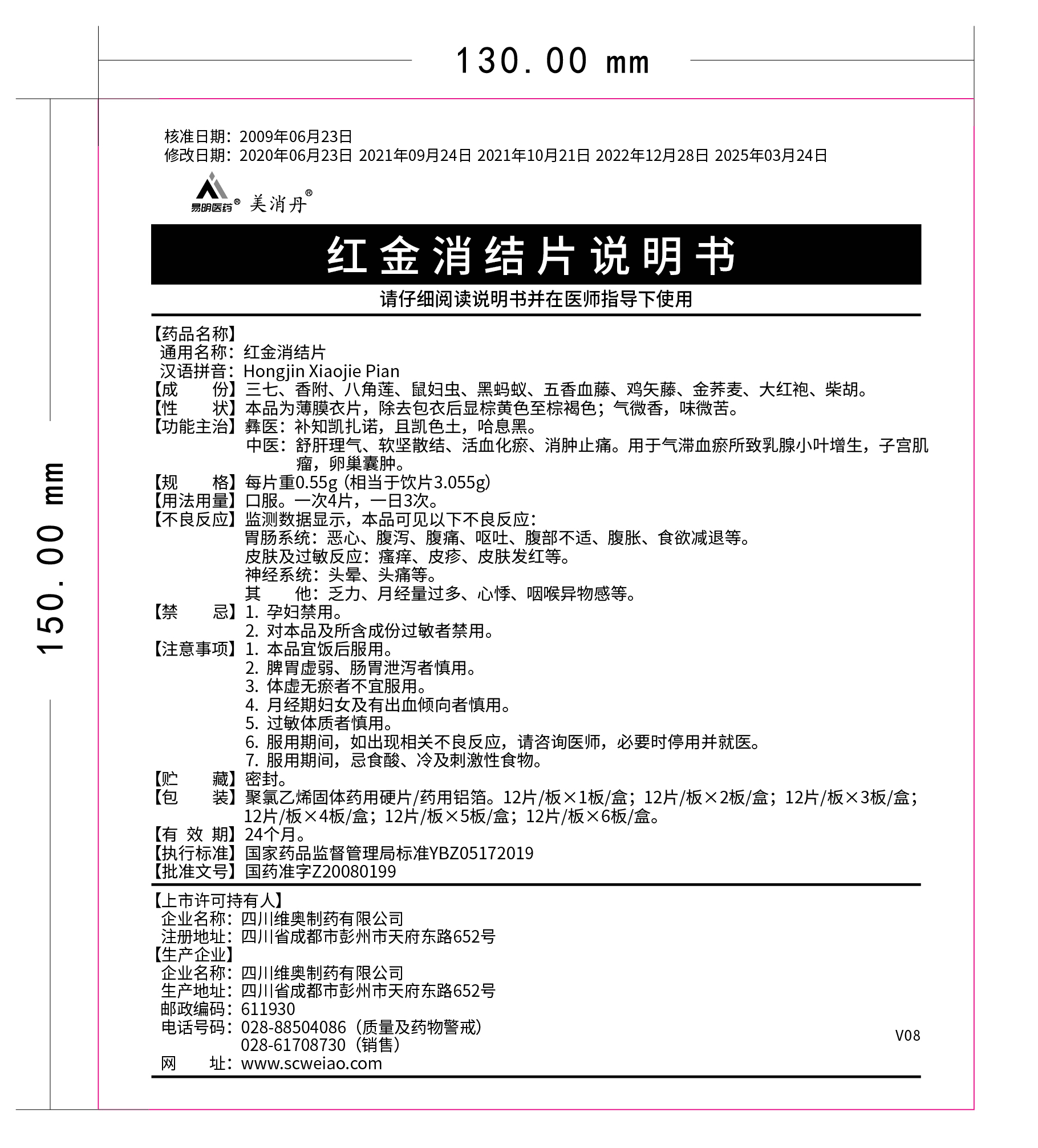 192025-09我司對紅金消結片說明書(批準文號:國藥準字Z20080199)進行修訂